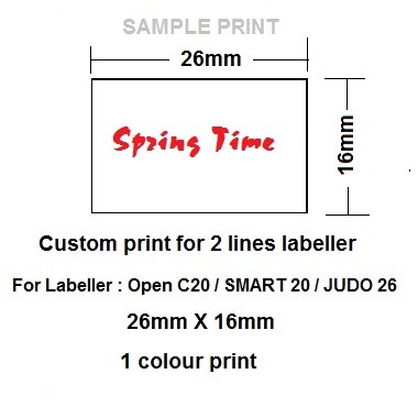| QUANTITY AND PRICE | Printed Label – 26X16 – Custom Print -CN – 1C – 100 rolls ( S$ 4.50 per roll) = S$ 450.00, Printed Label – 26X16 – Custom Print -CN – 1C – 300 rolls + 1 FREE labeller ( S$ 2.50 per roll) = S$ 750.00, Printed Label – 26X16 – Custom Print -CN – 1C – 500 rolls + 1 FREE labeller ( S$ 2.30 per roll) = S$ 1150.00, Printed Label – 26X16 – Custom Print -CN – 2C – 100 rolls ( S$ 5.00 per roll) = S$ 500.00, Printed Label – 26X16 – Custom Print -CN – 2C – 300 rolls + 1 FREE labeller ( S$ 2.75 per roll) = S$ 825.00, Printed Label – 26X16 – Custom Print -CN – 2C – 500 rolls + 1 FREE labeller ( S$ 2.50 per roll) = S$ 1250.00 |