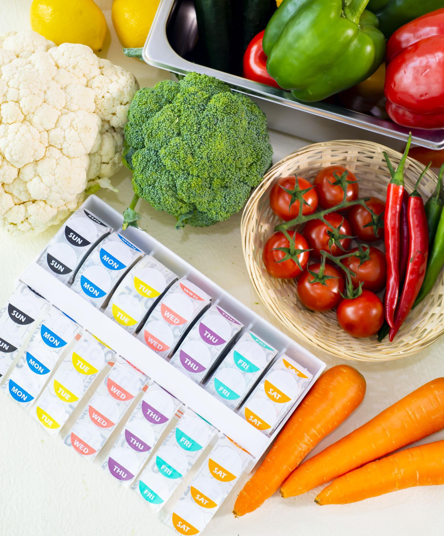- 7 rolls of Monday to Sunday color coded food safety grade labels